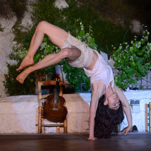 Music is composed by David Heredia and live performed by a cantaora, guitarist, pianist and percussion. The scenes are represented and danced by two contemporary dancers and a flamenco dancer.
